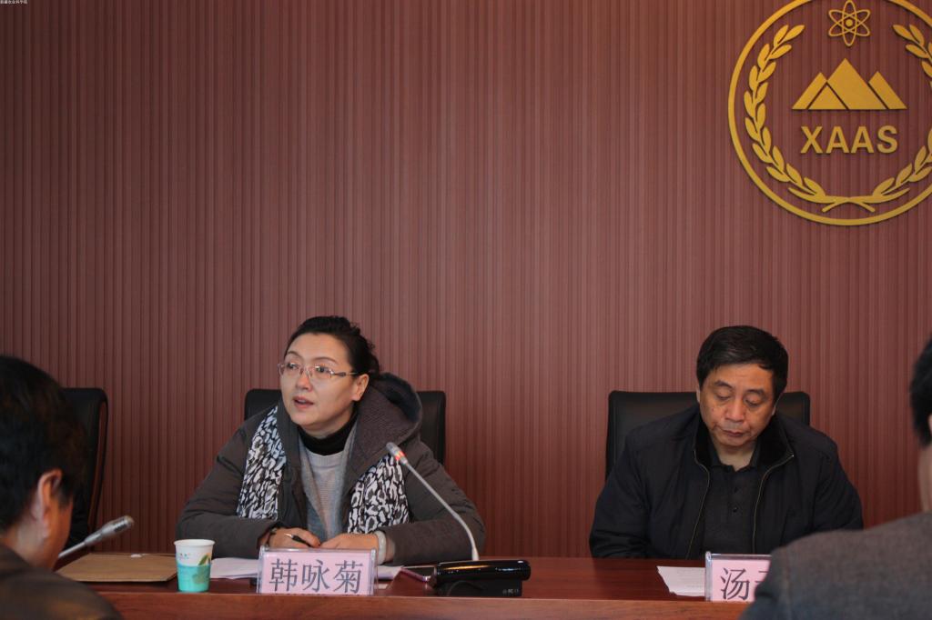 李进处长首先对自治区科技厅、财政厅长期以来对我院科技创新工作的大力支持表示感谢,并从我院基本科研业务费总体情况、取得的主要成效、主要的经验和做法、存在的问题和改进措施、相关建议五个方面详细汇报了我院基本科研业务费专项的实施管理情况。