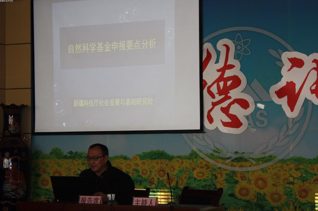 会议特邀自治区科技厅社会发展与基础研究处张耀处长从国家自然科学基金项目类型、特点、资助领域、申报要求、注意事项等方面作了专题辅导报告。并结合多年的项目管理经验,重点分析了NSFC-新疆联合基金的资助领域,对“十五”以来项目申请、资助情况做了详细的讲解。