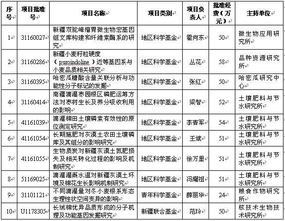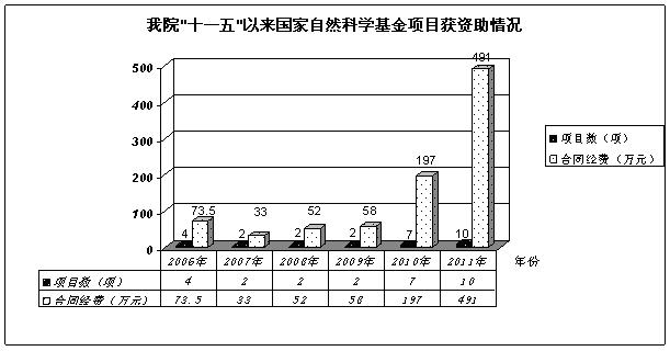 2011年11月1日,国家自然科学基金委员会-新疆维吾尔自治区人民政府联合基金项目(以下简称“新疆联合基金”)评审工作结束(详见附件),由我院核技术生物技术研究所范玲研究员主持的“长绒棉优异品质形成的分子机理及功能基因发掘研究” 项目获得基金委资助,项目批准经费50万元,该项目也是我院首个获批的新疆联合基金。截止目前为止,2011年度国家自然科学基金项目申报工作全部结束,我院今年国家自然科学基金项目共获批10项,项目总经费491万元(见表1),获批数量及经费均创我院历史最高水平。