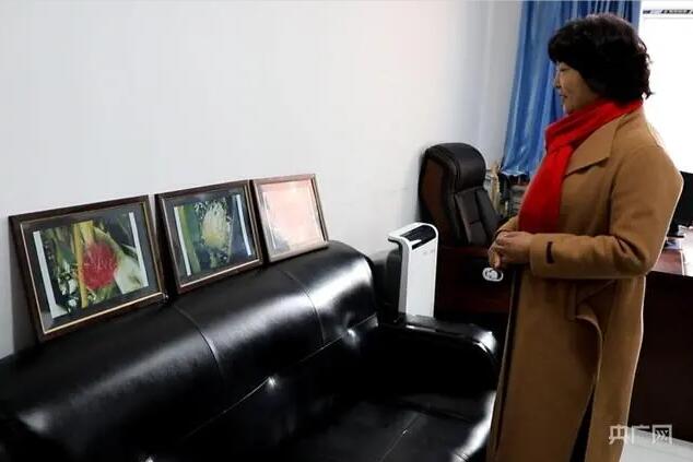 梁晓玲介绍自己在田间拍摄的玉米花照片 (央广网记者丁安 摄)