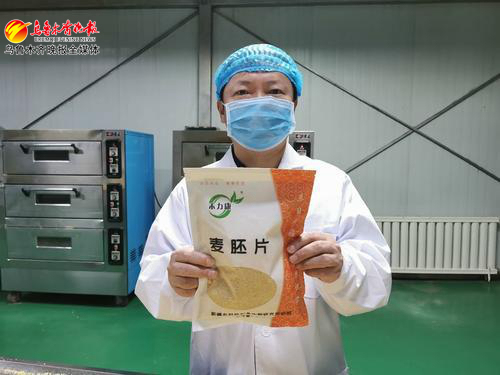 于明介绍,面粉加工企业在制粉过程中小麦胚芽被压扁,混入麸皮成为饲料,十分可惜。团队经过三年摸索,终于攻克灭酶温度、脱水时间等难题,从麸皮中成功分离小麦胚芽,生产出营养损失少、保质时间长的麦胚片,生产技术和产品在国内具有较高知名度,已在多家企业落地转化。
