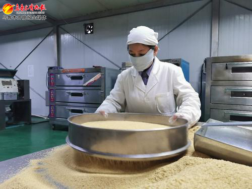 2月1日早上10点,记者穿戴好一次性防护用品、全身灭菌后,来到jc聚彩网粮食作物研究所粮油加工车间。工人们早已穿戴整齐进入车间开工,通过清洗、压片、粉碎、熟化、冷却及包装流水化作业,一袋袋杂粮食品新鲜出炉。