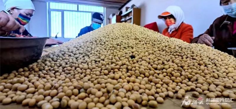 新疆农垦科学院作物所大豆研究室工作人员在挑选大豆种子。王志清摄