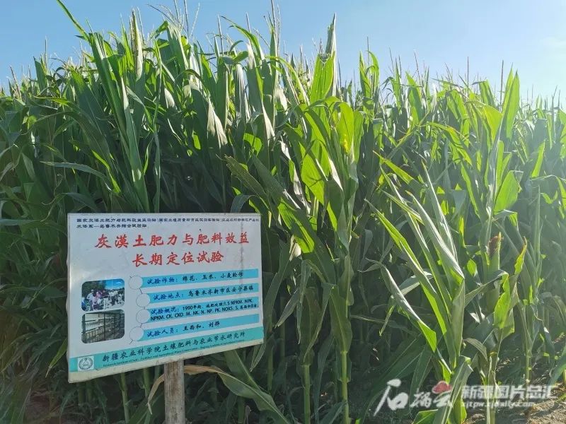 国家灰漠土肥力与肥料效益监测站试验田里的玉米长势喜人。石榴云/新疆日报记者 曹华摄