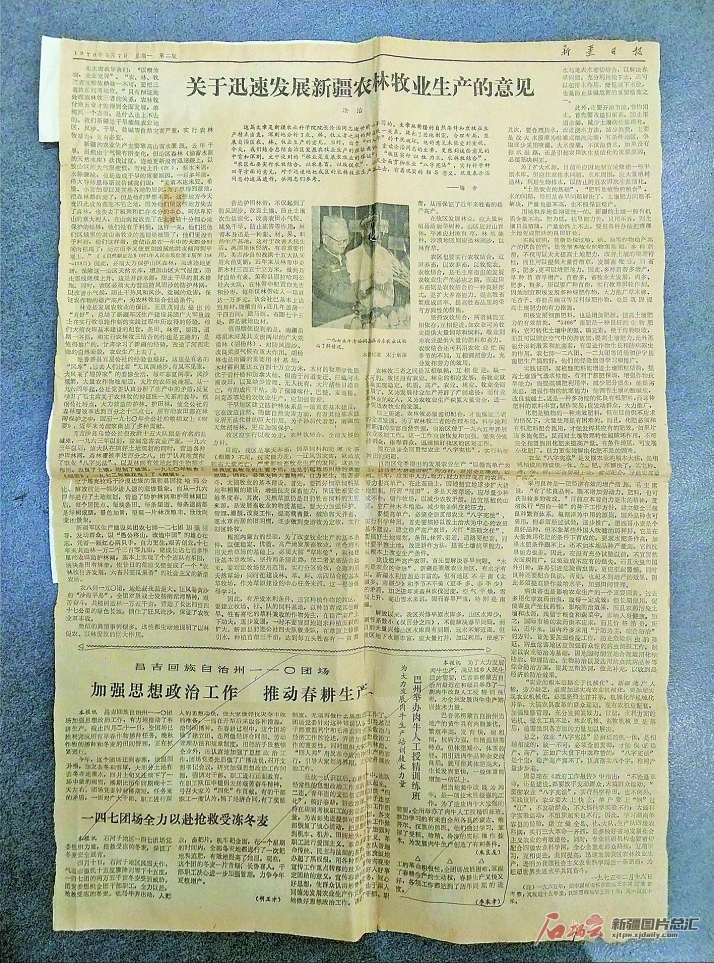 1979年5月7日,《新疆日报》刊发了《关于迅速发展新疆农林牧业生产的意见》