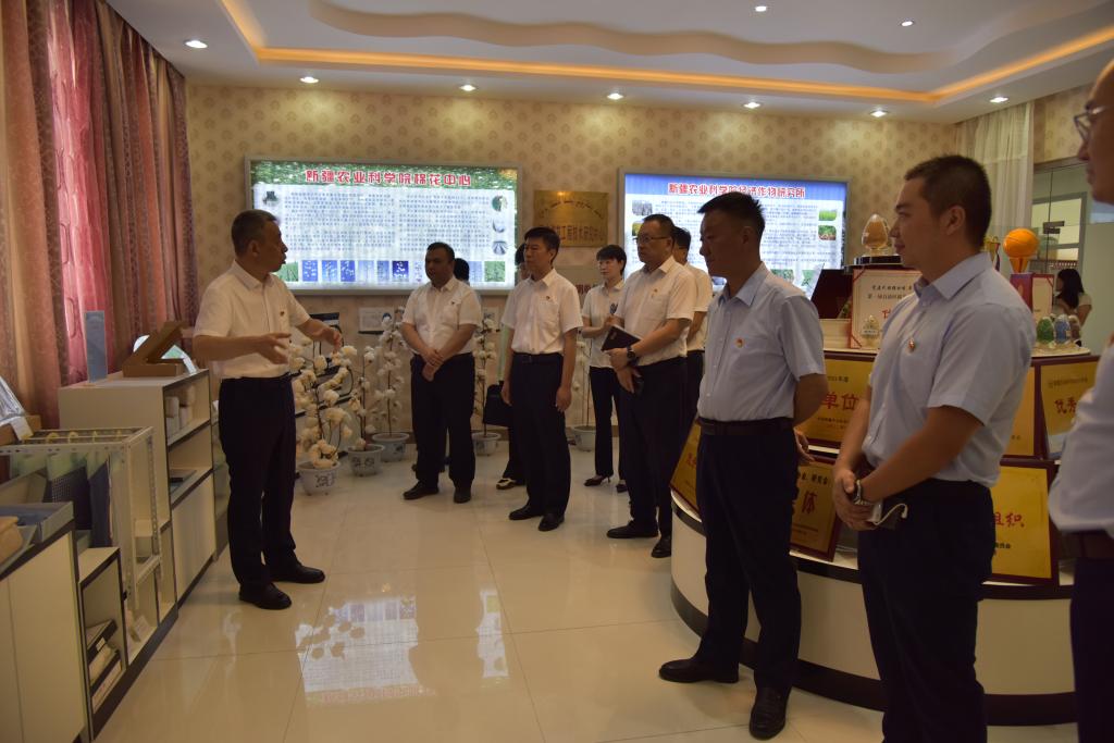 在棉花所成果展厅向住建厅公监处、兵团公积金管理中心、乌鲁木齐银行介绍了棉花所的发展历程和近年来在科技创新、科技服务、科研成果、合作交流、农业决策咨询等方面取得成效。