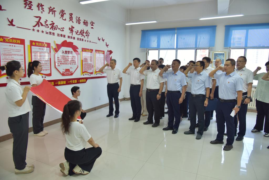 在棉花所党员活动室党员同志们重温入党誓词,党员举起右拳恪守对党作出的庄严承诺。以此庄严时刻重现增强党员干部的责任感、荣誉感和使命感,激励大家在工作中充分发挥模范带头作用,持续提升服务能力和服务水平,以实际行动为党旗增辉,切实强化党性修养。