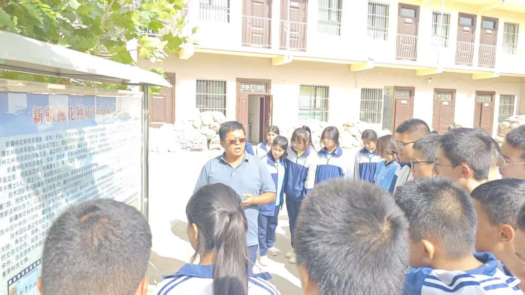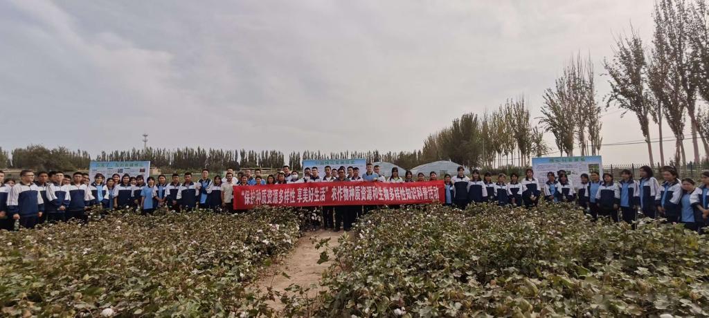 为庆祝第八个“中国农民丰收节”,2025年9月19日,棉花种质资源创新团队在库车陆地棉试验基地举办以“保护种质资源多样性享美好生活”为主题的棉花种质资源科普开放日活动,来自库车市第一中学的100名师生参加此次活动,师生们先后参观了库车陆地棉试验基地办公区、新疆棉花种质资源库(库车)和棉花种质资源鉴定繁种圃,吾买尔江老师向师生介绍了库车陆地棉试验基地的发展历史,团队首席马君老师给同学们上了一堂生动的科普实践课程,他详细讲解了新疆棉花种质资源库的建库历史和功能定位,棉花种质资源收集、保存、评价和利用整过流程,并与学生们积极互动,耐心解答同学们提出的问题,指导同学们亲手下地采摘棉花,体会劳动的快乐。