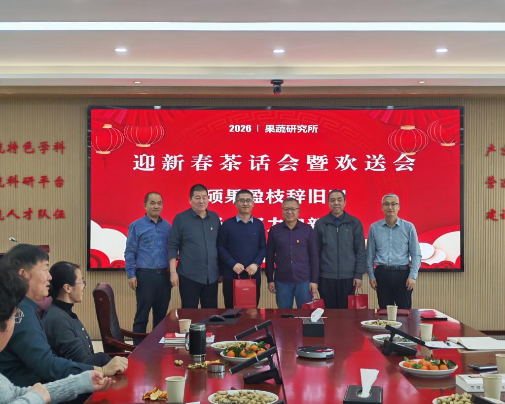 2026年1月15日下午,果蔬研究所在四楼会议室召开“硕果盈枝辞旧岁,凝心聚力启新程”迎新春茶话会暨欢送会。会议由所党总支部书记刘恒德主持,全体职工欢聚一堂、共迎新春,深情欢送退休同志与挂职干部,共谱团结奋进生动乐章。
