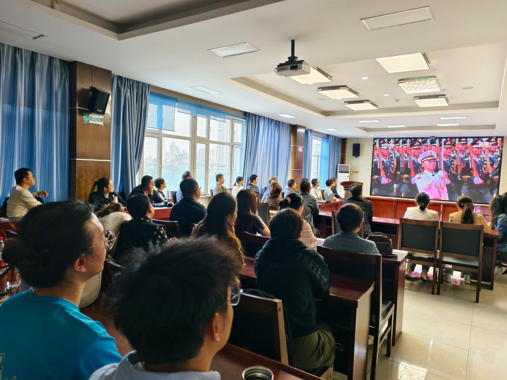 在研究所会议室,参会人员按时到场、整齐就座,现场氛围庄重而肃穆。随着大会直播开启,大家目光专注、神情凝重,认真聆听大会讲话,深刻感悟那段浴血奋战、救亡图存的峥嵘岁月;当阅兵仪式环节到来,各受阅方队迈着铿锵有力的步伐依次登场,军容严整、气势如虹,各类彰显我国国防科技实力的新型武器装备集中亮相,充分展现了新时代中国国防和军队现代化建设的辉煌成就,更传递出国家捍卫主权、安全、发展利益的坚定决心与强大能力。