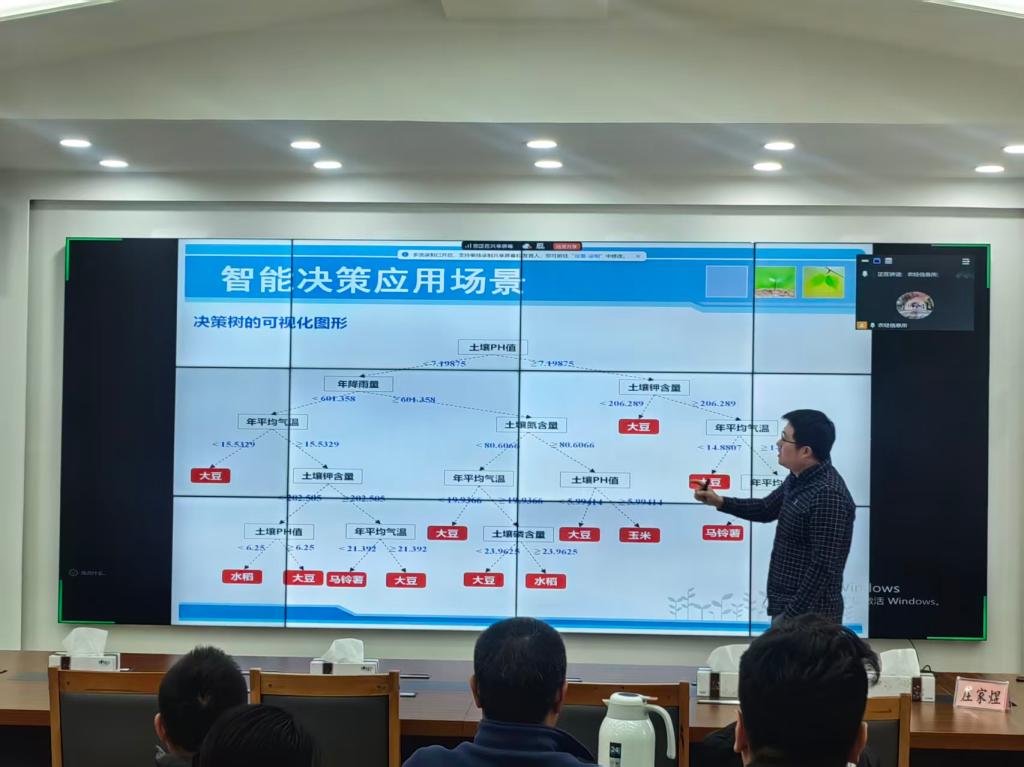 庄博士从“线性规划与非线性问题”切入,指出传统农业模型在处理水资源分配、种植结构优化等问题时的局限性。他通过“灌溉模型”案例说明,作物对水分的响应并非线性,而是呈现曲线关系,传统线性规划难以精准刻画。而人工智能方法,尤其是机器学习与深度学习,能够更好地处理这类复杂的非线性关系,实现更科学的资源调度与决策支持。他进一步介绍了决策树、神经网络、支持向量机、遗传算法等典型AI方法,并结合农业案例进行演示,如:决策树用于根据土壤PH值、氮磷钾含量、降雨量等指标推荐适宜作物;神经网络用于基于气象数据预测虫害发生等级;遗传算法用于求解复杂的水肥资源优化配置问题。