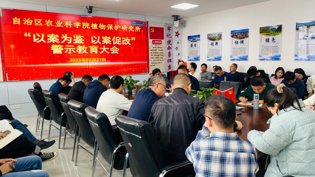 2月27日下午,植物保护研究所在棉检楼四楼会议室召开巡察整改工作推进会议暨“以案为鉴 以案明纪”警示教育大会。所领导班子、各团队负责人及全体职工共60余人参与会议。