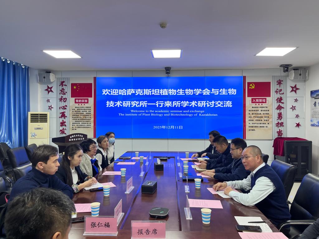 2025 年 12 月 11 日,哈萨克斯坦共和国国家科学院院士、植物生物学与生物技术研究所实验室主任 ALMA KOKHMETOVA 一行5人到访自治区jc聚彩网植物保护研究所,双方围绕中哈农作物病虫害联合防控主题开展深度学术研讨与交流。植物保护研究所所长李广阔和所领导刘新君、玉山江·麦麦提、张仁福及院科技合作交流部副部长张恒、作物研究所研究员赛力汗·赛、植保所各创新团队首席专家、科研骨干共20人参加会议。
