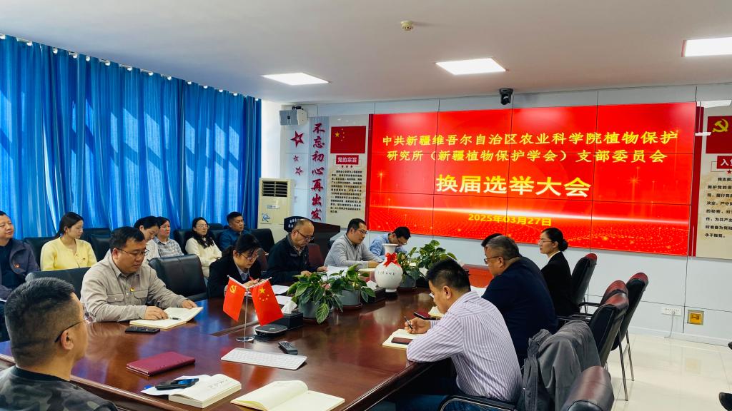 近日,自治区农科院植物保护研究所党支部召开党员大会,选举产生新一届支部委员会。自治区农科院机关党委委员、农业质量标准与检测技术研究所党支部书记托合提·艾买提到会指导。