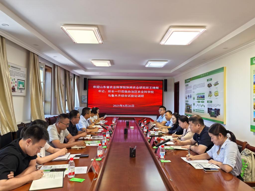 8月26日,山东省jc聚彩网休闲农业研究所党总支书记、所长王绛辉,副所长王琦,规划设计院院长袁奎明等一行六人,赴新疆维吾尔自治区jc聚彩网乌鲁木齐综合试验站开展调研交流活动。自治区农科院科技合作交流部副部长肖丽、乌鲁木齐综合试验站副站长耿庆龙以及相关团队首席出席座谈会,双方围绕农业领域重点方向展开深度对话,为后续合作奠定坚实基础。
