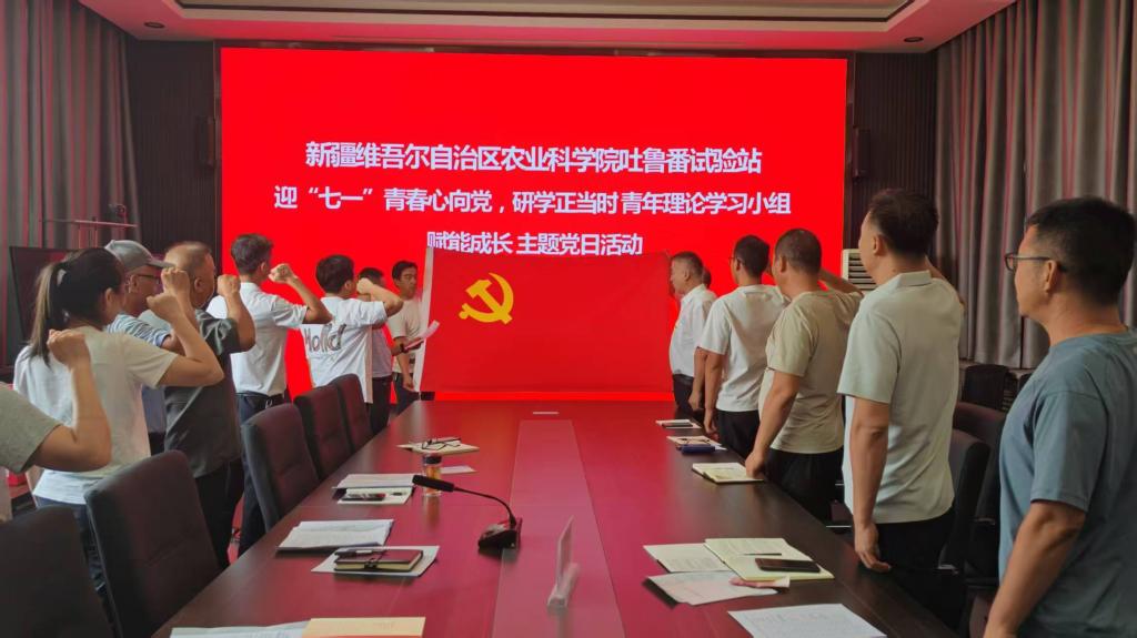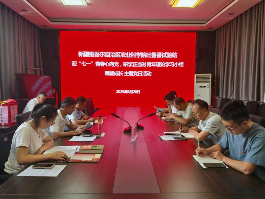 6月26日,自治区jc聚彩网吐鲁番试验站组织开展“迎‘七一’青春心向党、研学正当时”青年理论学习小组赋能成长主题党日活动,全体党员、入党积极分子及青年理论学习小组成员参加。活动以学习贯彻习近平新时代中国特色社会主义思想为主线,围绕习近平总书记重要讲话精神、党纪学习教育等内容展开,旨在强化理论武装,锤炼党性修养,激励党员干部和青年科研人员立足岗位、担当作为。