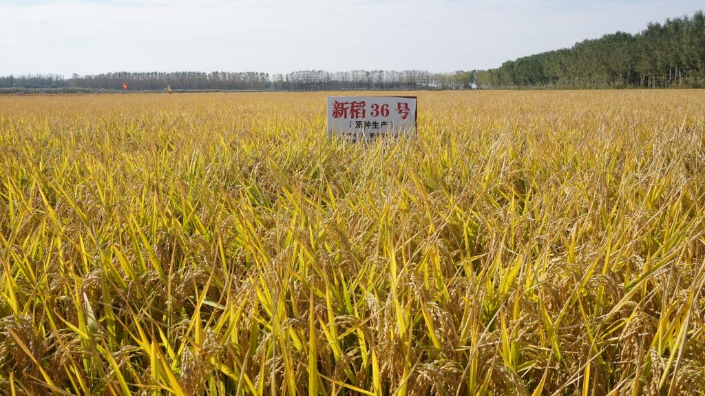 新稻36号是我院与新疆金丰源种业股份有限责任公司于2001年以秋田小町为母本,96-20-16为父本,采取有性杂交,经南繁北育、系谱法选育而成,审定编号为新审稻2011年08号,属粳稻,中早粳中晚熟品种。该品种株高104.5cm,前期长势强劲,耐瘠薄,成熟时茎秆黄色,活杆成熟不早衰。散穗型,平均穗长18.24cm,平均穗总粒数148粒,结实率90%以上,抽穗、成熟整齐一致。生育期平均154天,插秧栽培为150-160天,直播栽培为145-150天。千粒重25g。出糙率82.4%,精米率76%,整精米率71.8%,垩白粒率16%,垩白度1.0%,直链淀粉15.4%,胶稠度72mm,粒长5.4mm,粒型长/宽比2.0,透明度2级,碱消值7级。综合指标达国标二级优质稻谷标准。