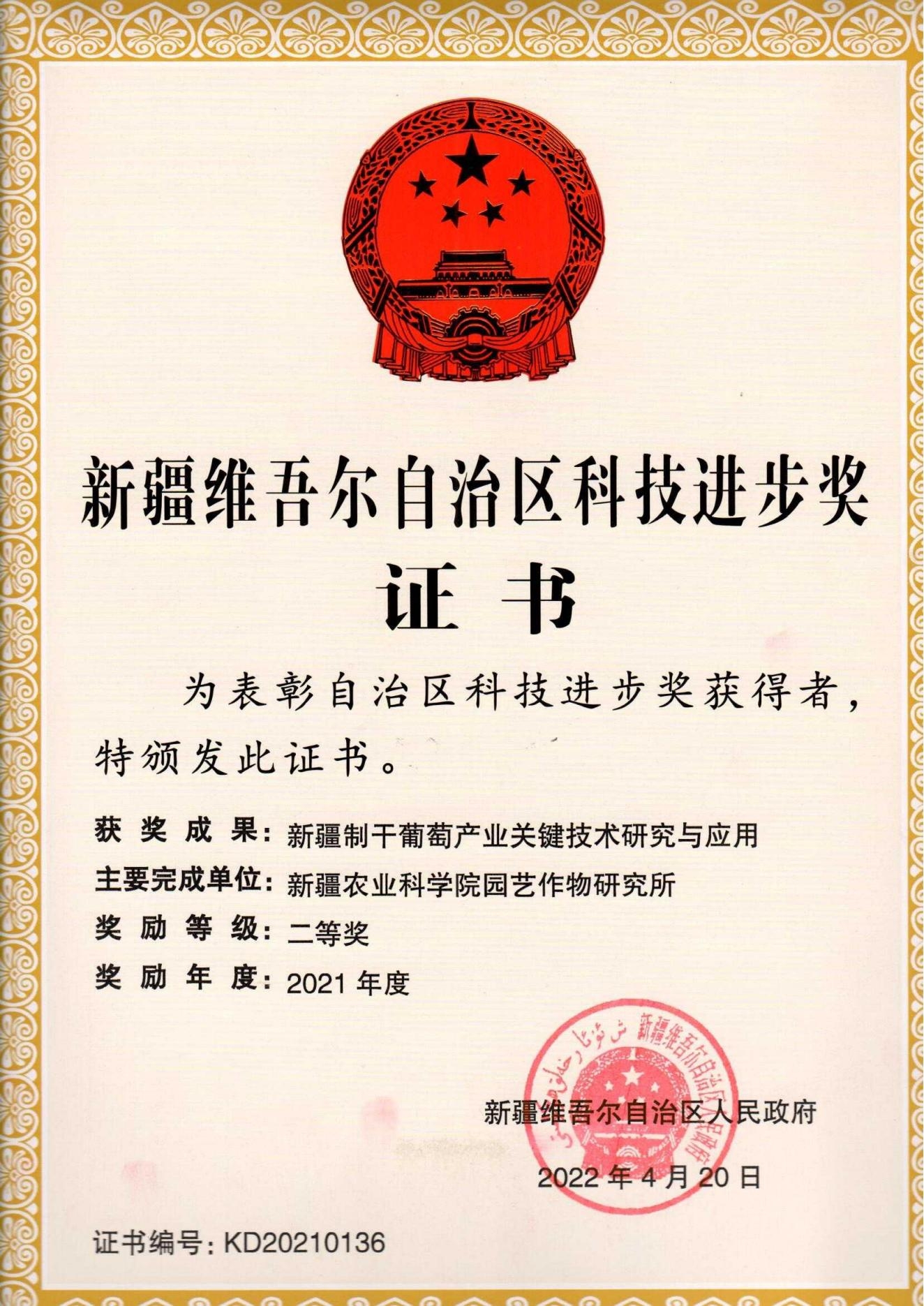 新疆葡萄栽培面积和产量均位居全国首位,在乡村产业振兴、农民增收致富中占有重要地位。新疆是世界最大的绿色葡萄干产区,是我国唯一的集鲜食、酿酒、制干葡萄生产区域。本团队针对生产中品种单一,传统低棚架通风透光差、机械作业困难,制干工艺理论研究及创新不足,葡萄干功能营养品质挖掘不充分等问题;依托承担国家和省部级项目12项,开展相关研究与示范推广工作。取得以下创新性成果:1、通过对119份具有制干潜力葡萄品种(系)的系统评价,筛选出优质制干新品种8个。建立了我国首个制干葡萄品种和葡萄干品质特征可视化信息查询系统;探明了决定葡萄成干品质的主效因子,建立了制干葡萄品质综合评价体系,丰富了制干葡萄品种,制干新品种亩均收益较无核白显著提升,为制干葡萄品种优选提供了理论依据、产业持续发展提供了品种保障。2、根据吐鲁番气候特征和主要制干葡萄品种特性对传统低棚架栽培模式进行改造,构建了“高架少蔓龙干栽培模式”。通过改架,改善了架下微环境,提高了通风透光率;拓展了机械作业空间,便于出土埋土、整形修剪、水肥调控及病虫害防控等机械作业和生产管理,形成以“三改、两控”为核心的葡萄优质高效栽培技术体系,为我国制干葡萄产业提质增效提供了生产技术保障。3、以传统制干工艺为对象开展理论和应用研究,探明了传统制干工艺干燥特性差异,确定了绿色葡萄干色泽形成的关键时期、关键因子及阈值范围;创新性研究提出间接式太阳能制干工艺和晾房智能化控制装置。通过制干工艺创新与应用,葡萄制干时间缩短6d-7d、商品率和品质明显提高,为我国优质葡萄干大规模集约化生产提供了有力的技术支撑。4、针对不同制干工艺生产的葡萄干,开展系统研究,证实绿色葡萄干风味、营养、功能活性物质、细胞抗氧化活性和羟自由基清除能力等主要品质指标优于红褐色葡萄干;明确了晾房制干工艺在保持葡萄干品质方面优于其他自然制干工艺,为绿色葡萄干传统晾房工艺的继承和发展提供了理论依据。