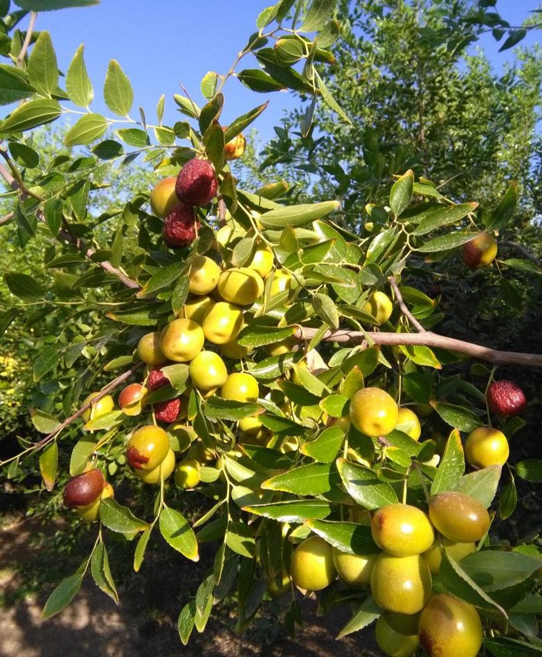 品种特性:该品种丰产早产性强,嫁接第3年平均株产达到7.18kg,第4年进入丰产期,鲜枣亩产可达1000kg以上;果实短圆柱形,平均单果重16.6g,可溶性固定物含量31%,果实发育期77-85d,在南疆地区8月中旬成熟。成熟时果皮鲜红色,果皮薄,果面光洁美观,果肉酥脆无渣,汁液丰富,品质佳。栽培技术要点:由于该品种极丰产,坐果过多时容易出现大小果,为保障枣果大、果个均匀,喷一次保花保果药剂即可,或进行疏果。此外,由于果实皮薄且酥脆多汁,果实成熟期降雨易裂果,需做好裂果的防治工作。该品种突出的特点为适应性强,在吐鲁番地区耐45℃高温亦可丰产。目前已推广种植至吐鲁番、阿拉尔、喀什、和田等地。
