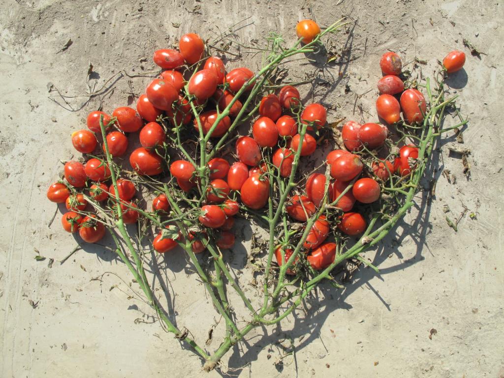 品种特性:新红71号属晚熟品种,植株疏散,节间长,生长势强。果实高圆形、似梨形,无青肩,未成熟果绿色,成熟果红色,果肉紧实,果皮厚,不裂果,硬度高,果面光滑。该品种丰产性强,抗病性好,抗逆性强,果实硬度好,抗裂耐压耐贮运,品质好,适宜做晚熟机械一次性采收。平均亩产8吨,平均单果重80.0g,可溶性固形物含量5.5%,番茄红素含量0.123mg/g,总酸含量3.32%,耐压力70.0N/果。