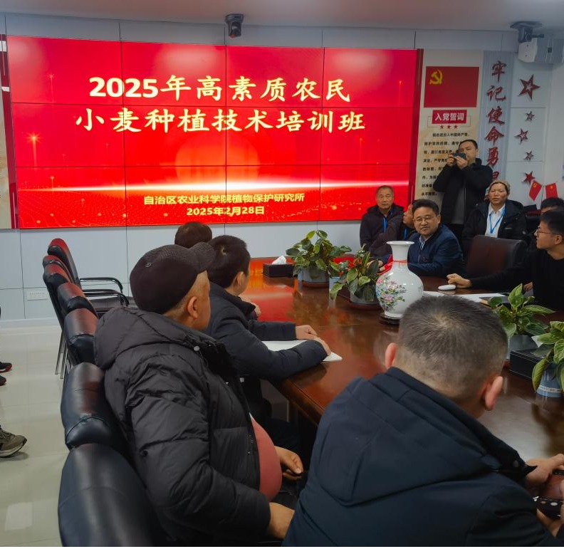近日,植物保护研究所作为“特克斯县2025年高素质农民小麦种植技术培训班”实习实训分会场,在乌鲁木齐为来自伊犁州特克斯县和昭苏县的110名高素质农民开展技术培训。植物保护研究所所长李广阔、副所长玉山江·麦麦提参加了培训并为学员进行了学前指导。培训会上,我所小麦及水稻病虫害综合防控创新团队相关专家,以“新疆小麦主要病虫害识别及其综合防控技术”和“小麦病虫害监测预警技术与综合防控技术”为主题,为学员详细讲...